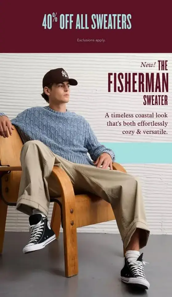 Excludes: Peanuts, NFL X AE, Redbull Racing X AE, Formula 1 X AE, AE77, NCAA X AE, Select Apparel & Accessories, Men's Tops Multipacks, Grinch