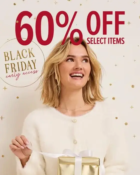 Black Friday is here! Shop in store and get up to 60% off select styles.